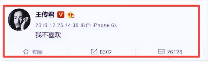 只有他,王传君,顶着一堆热搜和经纪人的白眼,在微博上写下四个字——“我不喜欢。”