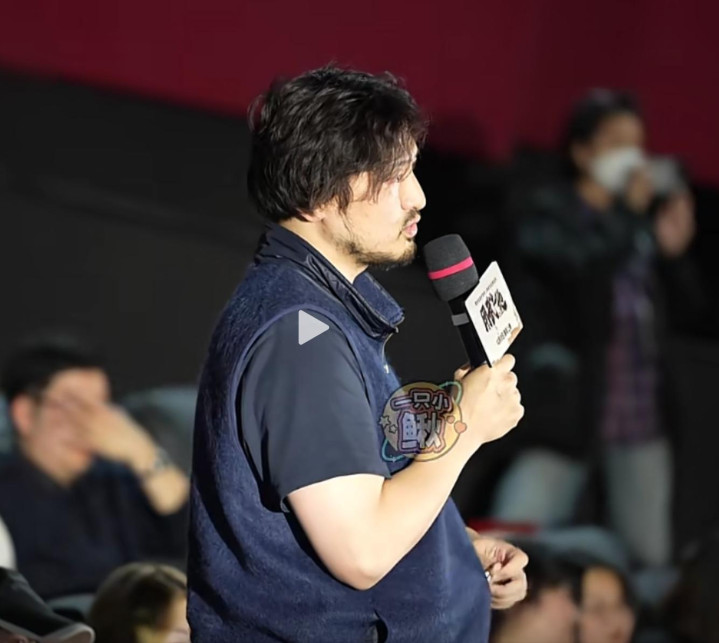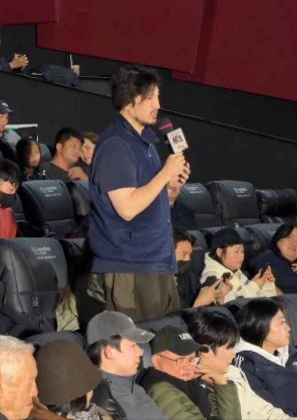 首映礼现场,观众席第一排,一个穿着短袖现身寒冬的男人,眼神飘忽、神情呆滞、动作频频。摄影机拉近,他的脸几乎被肉填满,眼圈发红,眼里泛着泪光。